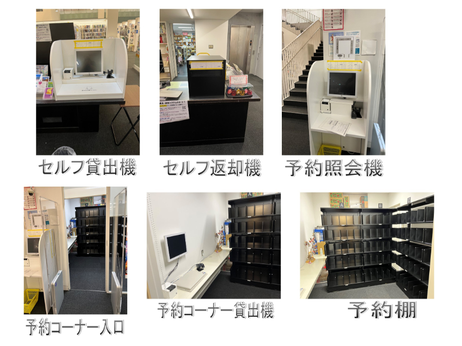 ■セルフ貸出機・セルフ返却機・予約コーナーなどは、実際に機器を設置したら、その様子の写真や使用方法を改めてホームぺージで公開しますので、ぜひご確認ください!
